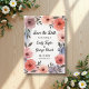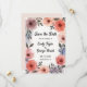 Esta elegante acuarela floral ahorra la invitación de la fecha es perfecta para un boda moderno. El diseño romántico presenta un marco floral de color agua elegante con caligrafía negra en un fondo blanco.