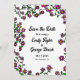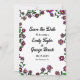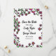 Esta elegante boda botánica, salvo la invitación de fecha, es perfecta para un boda floral moderno. El diseño es sencillo y cuenta con un jardín botánico de rosas morados y magenta y hojas verdes con una elegante tipografía negra sobre un fondo blanco.