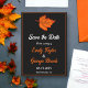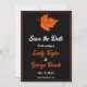 Esta elegante boda de otoño, salvo la invitación de fecha, es perfecta para un boda moderno de otoño. El diseño sencillo presenta hojas de arce de otoño con una tipografía blanca y naranja elegante sobre un fondo negro.