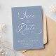 Anuncie su día de bodas con estilo con este elegante Dusty Blue Minimalista Elegant Save the Date. La suave y polvorienta paleta azul aporta un toque moderno y relajante, dando un toque perfecto a una elegante celebración. ¿Te preocupa que no coincida con tu tema boda? La elegancia atemporal de este diseño hace que sea fácil mezclarse con cualquier estilo, permitiendo que sus detalles brillen sin eclipsar su ambiente único. La personalización es una brisa: agrega tus datos personales para hacerlo bien. Y para esos horarios ocupados, puedes enviarlo digitalmente por una opción simple y sin estrés. Haz que esta hermosa fecha salve la tuya y asegúrate de que capturará el estilo de tu boda mientras te mantienes fiel a tu visión.