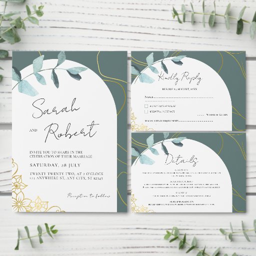 Elegant Eucalyptus Greenery & Gold | Wedding SuiteDiseñado por Latmer Az el arab