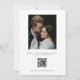 Una boda minimalista de moda salva la invitación de la fecha en blanco y negro. El titular "save the date" (guardar la fecha) está escrito a mano en negro y moderno. Al contrario, agregue su sitio web de fotos y bodas, con código QR.