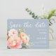 Reserva La Fecha Elegante Moderno Aquarela Floral Peonía Azul Polv