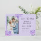 Elegante, moderno, flores de lila, compromiso, boho, campo, púrpura, campo, rústico, guión, Foto, invitaciones de boda para guardar la fecha. Por favor, personalícela con sus datos.