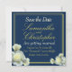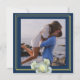 Establezca el estilo y la elegancia o su día especial con esta tarjeta Save the Date simple y elegante con una tipografía de guion dorado elegante y una delicada rosa blanca sobre un fondo azul marino y personalizada con una foto en la parte posterior. Esta tarjeta de moda puede proporcionar la información principal que necesita enviar a sus invitados para su día especial. A continuación, envíe su invitación y sus tarjetas de presentación a RSVP para que sus huéspedes puedan proporcionarle detalles de regalo o cualquier información de viaje y hotel. Si necesitas ayuda para personalizar la tarjeta, por favor envíame un correo electrónico y me gustaría ayudar. designsbykatz@gmail.com ¡Felicidades por tu día especial!