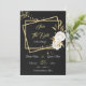 flores blancas elegantes y románticas y hojas de oro en rectángulos dorados negro salva la invitación a la fecha Los detalles del purpurina se simulan