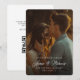 Elegante Script Names Personalizado Photo Wedding Save the Date es un diseño atemporal con asombrosa tipografía superpuesta que te permitirá difundir las noticias de tu próxima celebración. En la parte posterior puedes dar información sobre tu sitio web y un código qr para una visualización fácil