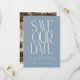 Comparte tus emocionantes noticias con esta tarjeta moderna minimalista "Save Our Date", que presenta tipografía en negrita en una suave parte frontal azul y tu foto favorita en la parte posterior. Disponible como opción descargable o impresa, esta tarjeta es perfecta para parejas que buscan combinar estilo y personalización. Agrega tus nombres, fecha de boda, ubicación y sitio web para mantener a tus invitados informados y ansiosos por celebrar. Ideal para temas de boda modernos y elegantes, esta tarjeta es una forma sofisticada y memorable de anunciar tu gran día.