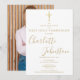 Elegante invitación de Primera Comunión con firma dorada para guardar la fecha, que presenta una elegante firma con nombre en escritura dorada y una foto especial en el reverso. Personalice con la información de su evento especial en letras doradas elegantes en este diseño neutral en cuanto al género. Diseñado por Thisisnotme©
