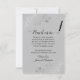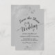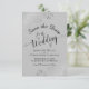 Estas hermosas tarjetas de citas le harán saber a sus amigos y familia sobre su próximo boda. Presentan un elegante diseño gris y negro con rizos y remolinos de color gris plateado ornamentados en las esquinas y una sofisticada caligrafía de escritura que lee Save the Date con los nombres de la pareja, fecha boda y ubicación. La parte de atrás tiene un lindo gráfico de "lápiz en" con espacio para una nota que puede incluir un sitio web donde sus invitados pueden ir para más información.