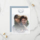 Anuncie su día especial con esta elegante tienda de recuerdos, que incluye una impresionante plantilla de fotos boda enmarcada por una corona clásica con motivos de monograma. El diseño floral azul polvoriento y la escritura caligráfica minimalista crean un ambiente atemporal, mientras que la vegetación romántica de las flores le confiere un toque de encanto. Perfecto para mostrar el monograma de novias y novios, esta sencilla plantilla de fotos combina el estilo formal tradicional con una estética simplista suave. ¡Un hermoso recuerdo para tus seres queridos!