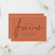 Elegant Decidido en Forever QR código Terracota Añadir tu código QR a tu sitio web boda en la parte posterior. En el centro hay un guión con estilo.El resto del texto que puede personalizar fácilmente. Los colores del texto y del fondo pueden cambiarse si desea adaptarse mejor a su tema boda a través de la opción personalizar.