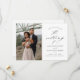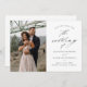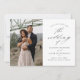 Un elegante guión de matrimonio fotográfico 2 ahorra la tarjeta de fecha con elegantes detalles de caligrafía, una foto vertical y texto clásico en el frente. En la parte trasera hay una página web horizontal de fotos y bodas para que los clientes puedan obtener más información. Haga clic en el botón de edición para personalizar de este diseño.