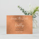 Tarjeta plana de boda con textura metálica de cobre falso elegante para guardar la fecha.