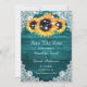 Reserva La Fecha Elegante Verde azulado Rustic Wood Lace Sunflower