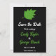 Esta elegante boda de otoño, salvo la invitación de fecha, es perfecta para un boda moderno de otoño. El diseño es sencillo, con hojas de otoño verdes y una tipografía blanca y verde elegante sobre un fondo negro.