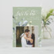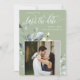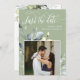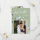 Esta invitación de guardar la fecha presenta arreglos de follaje de vegetación de acuarela elegante, hojas, hermosa caligrafía y fuente tipográfica serif simple con un marco de foto cuadrado en un fondo verde polvoriento y código QR para una apariencia limpia minimalista y moderna, que es una forma hermosa de informar sobre su próxima boda. Anuncie a su familia y amigos que se casarán con esta invitación y agregue un toque personal con hermosas fotos de usted y su futura mejor mitad. La simplicidad de este diseño agrega un toque de elegancia a su boda. Funciona bien con muchos temas de boda y definitivamente es un gran complemento para su boda. Simplemente personalice los nombres y la redacción en unos sencillos pasos y personalice la tarjeta de invitación con su foto de la feliz pareja y reemplace el código QR con el suyo.