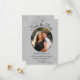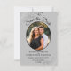 Estas hermosas tarjetas son una excelente manera de hacer saber a sus amigos y familia que deben guardar la fecha para su próximo boda. Presentan un elegante diseño gris y negro con tu foto en un marco ovalado rodeado de Relieves metalizados de imitación gris plateado y remolinos. Hay un estilo de escritura elegante y espacio para sus nombres, la fecha y ubicación del boda. La parte de atrás tiene un lindo gráfico de "lápiz en" con espacio para una nota que puede incluir un sitio web donde sus invitados pueden ir para más información.