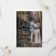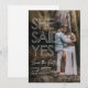 Moderno anuncio de compromiso de guardar la fecha con una foto de usted y su pareja, el dicho 'ella dijo sí' en una fuente hueca tipográfica en negrita, sus nombres, fecha y el lugar de su futura boda.