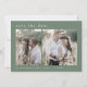 Esta boda de boho del bosque moderno de montaña 2 foto, salvo la tarjeta de fecha de la Colección Emelia, es perfecta para una boda de destino de madera. El diseño de color verde sabio oscuro presenta una tipografía rústica y sencilla con un ambiente montañoso de bosques. Personalice la parte delantera de la tarjeta con 2 de sus fotos favoritas de compromiso, sus nombres y fecha de boda. Añade la dirección del sitio web del boda al dorso de la tarjeta.
