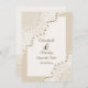 Elegante encaje blanco con boda de perlas Save the Date invitación con encaje blanco sobre beige de arena que cubre dos esquinas de un rectángulo blanco con borde beige. Texto en castaño. Ten en cuenta que el encaje está "impreso" y no es real. Este elegante y chic diseño elegante y romántico forma parte de un conjunto boda y es perfecto para un boda de primavera, verano o otoño de moda con una paleta de colores neutros.