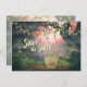 Esta invitación Save the Date boda cuenta con un encantador cementerio. Algunas tumbas antiguas con un fondo de árboles retorcidos adornado con bonitas flores y un bonito cielo rosado oscuro.