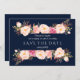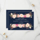 Diseño de tarjeta único y elegante con rosas pintadas de rosa y peonías en un fondo azul marino rico (puedes cambiarlo, pero debes cambiar el color del texto para que se ajuste al color de fondo elegido). En la parte posterior, el mismo diseño floral con el nombre de la novia y el novio. Utilice la herramienta Personalizar para agregar su información, cambiar fuentes y colores. Visite, por favor, mi Colección Floral Modern Blush, para encontrar artículos que coincidan.