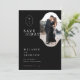 Una carta de matrimonio intemporal, clásica y elegante que ahorra la fecha con una estética minimalista moderna en blanco y negro clásico. Sencillo escudo monograma elegante con una tipografía sencilla y de diseño moderno. La foto se muestra en un marco fotográfico único para coincidir con el escudo monograma de la pareja. **Todos los colores se pueden cambiar para que se ajusten a sus preferencias de color boda. Consulte los demás elementos bodas coincidentes para esta colección.