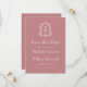 Esta elegante boda de inspiración vintage Save the Date presenta un par de iniciales en monograma blanco con un tipo de letra serif abierto encima y debajo de una línea divisoria y rodeado por un escudo de arte lineal sobre un fondo de rosa polvoriento. La parte posterior de la tarjeta es rosa sólido y polvoriento.