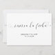 Una tipografía española Salva la Fecha con las palabras "Reserva la Fecha" en caligrafía negra con toques y corazones sobre un fondo blanco. El reverso es negro y puede cambiarse a cualquier color que desee. La disposición sencilla y minimalista y el amplio espacio abierto le confieren a este diseño un toque moderno, con letras caligráficas y corazones que le dan un toque romántico.