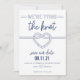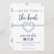 Esta temática náutica, salvo la fecha, tiene un nudo en forma de corazón hecho a mano y un patrón de ancla para que los clientes sepan cuando están atando el nudo.