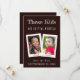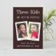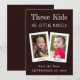 En el centro hay dos fotos infantiles superpuestas - la novia y el novio - con bordes blancos retro y los nombres escritos en sus bordes inferiores.