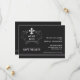 Anuncia tus planes de boda a amigos y familiares con estas tarjetas de Estilo Retro Elegante Fleur de Lis Salva la Fecha. La tarjeta presenta un diseño de símbolo Fleur de Lis elegante con espacio para agregar la fecha de tu boda. La tarjeta dice "salva la fecha" en una impresión blanca estilo retro. Personaliza con tus nombres y fecha de boda. Se muestra aquí sobre un fondo negro carbón.