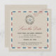 Un diseño de correo aéreo de estilo moderno con un sello central que dice "Para tener y para sostener, desde este día en adelante" y una estrella de mar azul en el sello. Colores antiguos de franjas de correo aéreo rojas y azules profundas con un borde de crema claro para hacerlo destacar. Un fondo de crema arenosa y un patrón blanco tenue en todo el fondo para dar la sensación de un sobre de correo aéreo. Para consultas sobre cambios de diseño personalizado por el diseñador independiente, por favor envíe un correo electrónico a paula@labellarue.com ANTES de personalizar o realizar un pedido.