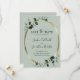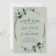 Boda de sabio metálico de oro de Eucalyptus Salva la fecha... La tarjeta Save the Date de lujo verde sabio presenta un marco ovalado metálico dorado adornado con hojas de eucalipto de color esmeralda que crean un borde natural para el texto de invitación. La parte posterior de la tarjeta contiene la información del sitio web de su boda y una plantilla gráfica de código QR que puede reemplazar con su propio gráfico de código. Todos los ejemplos de texto en ambos lados de la tarjeta se pueden revisar fácilmente con sus propios detalles en la plantilla de personalización.