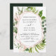Eucalyptus Botánico y Rosa Oro Geométrico Watercolor Primavera Invitaciones sobre fondo blanco - incluye una tipografía de escritura hermosa y elegante con hojas botánicas modernas y vegetación para la celebración especial del Día de la Boda.