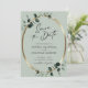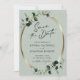 Eucalyptus Gold Modern Calligraphy QR Código Sage Wedding Save the Date... La tarjeta Save the Date de nuestro sabio botánico presenta un falso marco óvalo metálico dorado adornado con hojas de eucalipto de color esmeralda que crean un borde natural para el texto de invitación dentro. El sabio de la tarjeta contiene la información del sitio web de su boda y un ejemplo de gráfico de código QR que puede reemplazar simplemente introduciendo su propia dirección URL del sitio web de su boda en la plantilla. Todos los ejemplos de texto en ambos lados de la tarjeta (aparte de los elementos caligráficos) se pueden revisar fácilmente con sus propios detalles en la misma plantilla de personalización.