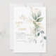 El diseño está decorado con una bonita y suave hoja de eucalipto con un toque de oro. Añade fácilmente tu mejor foto y tu importante información de elección. Diseño floral botánico ideal para cualquier temática moderna de invitación.