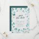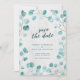 De esta forma, se guarda la fecha con hojas de eucalipto con las palabras "guardar la fecha" en un guión moderno, todo contra un fondo de mármol pálido en el frente y un color verde oscuro verde azulado en el reverso. Personalízalo reemplazando el texto del marcador de posición. Para obtener más opciones como cambiar el tipo de letra, su tamaño y espaciado entre letras haga clic en el botón "Personalizar". *Tenga en cuenta que la marca de agua Zazzle que aparece en la vista previa del zoom NO aparecerá en el producto impreso final. © Rosewood y Citrus
