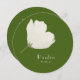 Sur un fond vert foncé profond, symbole de sérénité et de nature, une fleur blanche délicate vient souligner la pureté de ce moment unique.