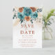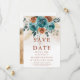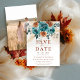 Esta foto del Naranja Boda Botánico Floral de otoño Verde azulado salva la fecha captura la esencia del otoño con un boho borde floral botánico con rosas acuarelas y follaje boda en los ricos, cálidos tonos de naranja verde azulado y quemado. El diseño es acogedor y se complementa con una textura de acuarela pálida que evoca el aire fresco y los tonos dorados del otoño. Ideal para parejas que planean una boda rústica, jardín o una celebración íntima en el patio trasero, esta suite de invitados refleja perfectamente el ambiente acogedor y romántico de la temporada de otoño, mezclando el arte romántico con la elegante sencillez de cualquier lugar.