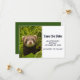 Guarda la tarjeta de cita con una adorable fotografía que muestra un pequeño hurón marrón parado en un pasto largo. ¡Cuidado como puede ser!