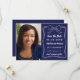Una foto Guardar la fecha para un cumpleaños 40 (o cualquier edad) Al frente: Añadir una foto vertical. Color de fondo azul marino, decorado con un arco dibujado a mano y un marco blancos. Personalice y agregue un nombre y detalles.