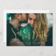 Moderno salve el guión de la fecha en falso color de Relieve metalizado dorado, con la foto de la pareja, simple y elegante. Gran foto guardar las tarjetas de fecha para bodas vintage, boda formal y otros eventos. Seleccione "Haga clic para más personalizar" en la sección "Personalizar esta plantilla" para ajustar la posición y el tamaño de la foto.