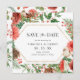 Esta hermosa y moderna boda navideña, salvo la tarjeta de invitación cuadrada de fecha, cuenta con elegantes flores de color rojo acuático con bayas, piñones y vegetación. La parte trasera de la tarjeta incluye un hermoso patrón de correspondencias caprichosas. Buscar elementos coincidentes en la colección Navidades botánicos de invierno rojo de vacaciones.