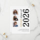 Fiesta de graduación Moderna 3 fotos Negrita 2026. Disponible digitalmente e impresa. Una tipografía elegante y un diseño de varias fotos, con texto en negrita girado y en el lado derecho en negro. Personalice fácilmente el resto del texto y reemplace las fotos en las plantillas con las suyas de orientación cuadrada.
