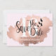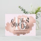 Moderno y moderno Sweet 16 Cumpleaños Guardar La Tarjeta De Fecha. El diseño presenta un trazo de Relieve metalizado falso en oro rosa sobre un fondo rosa brillante, un guión tipográfico ''guardar la fecha'' y detalles en letras en negrita.