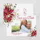 Tarjeta de anuncio de "Guarde la fecha" de Poinsettia Borgoña de Vacaciones de Invierno.