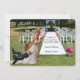 Finalmente, guarda la fecha con esta divertida tarjeta plana de pareja interracial. En esta, el novio es calvo o tiene la cabeza afeitada. Otro estilo tiene cabello. ¡Afortunado de que serás invitado al matrimonio en esta vida! Agrega los nombres de la pareja a esta tarjeta. Contacta a admin@giftsyoutreasure.com para preguntas. Agrega un mensaje en la parte posterior. El registro de la novia y el novio ya está hecho. Las figuritas de arcilla de la novia arrastrando al novio son una combinación bastante humorística. Esta pareja ha estado junta durante algún tiempo y ahora ella quiere hacerlo oficial. Pueden estar un poco adelantados ya que los invitados aún no han llegado.
