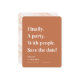 Finalmente un Fiesta de texto simple Terracota Minimalista Guardar la fecha. Un diseño sencillo y moderno resalta este texto editable en color. Finalmente. Un fiesta. Con la gente. Reserva la fecha! Con una textura de mármol de bonito en la parte trasera, pero que puede ser reemplazada por tu propia foto. ~ Revisa mi tienda para ver toda la suite boda para este diseño!
